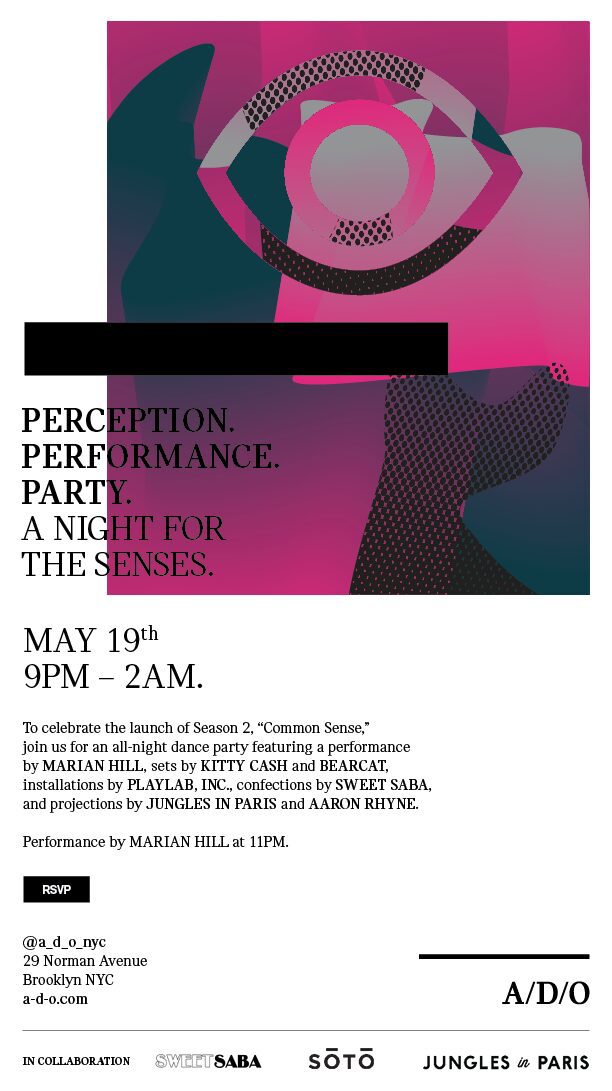 Join A/D/O for an all-night dance party in celebration of our second season, “Common Sense.”