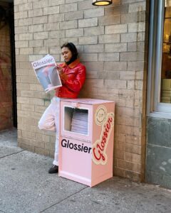 You can also stop by for complimentary coffee and samples (10am-4pm, while supplies last), grab a Glossier Newspaper for commuter-friendly reads (curated by their HQ!), snap a selfie with lifesize Boy Brows, or grab an exclusive Glossier MetroCard at select stations.