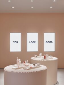 - Upon entering Glossier NYC—their ninth location and latest flagship store—guests will be greeted with a “You Look Good.” tile mosaic embedded in the concrete floor. With each store they find ways to twist and play with details so the store responds to its context. And this tile and its artisan craftsmanship in Glossier NYC is no exception.