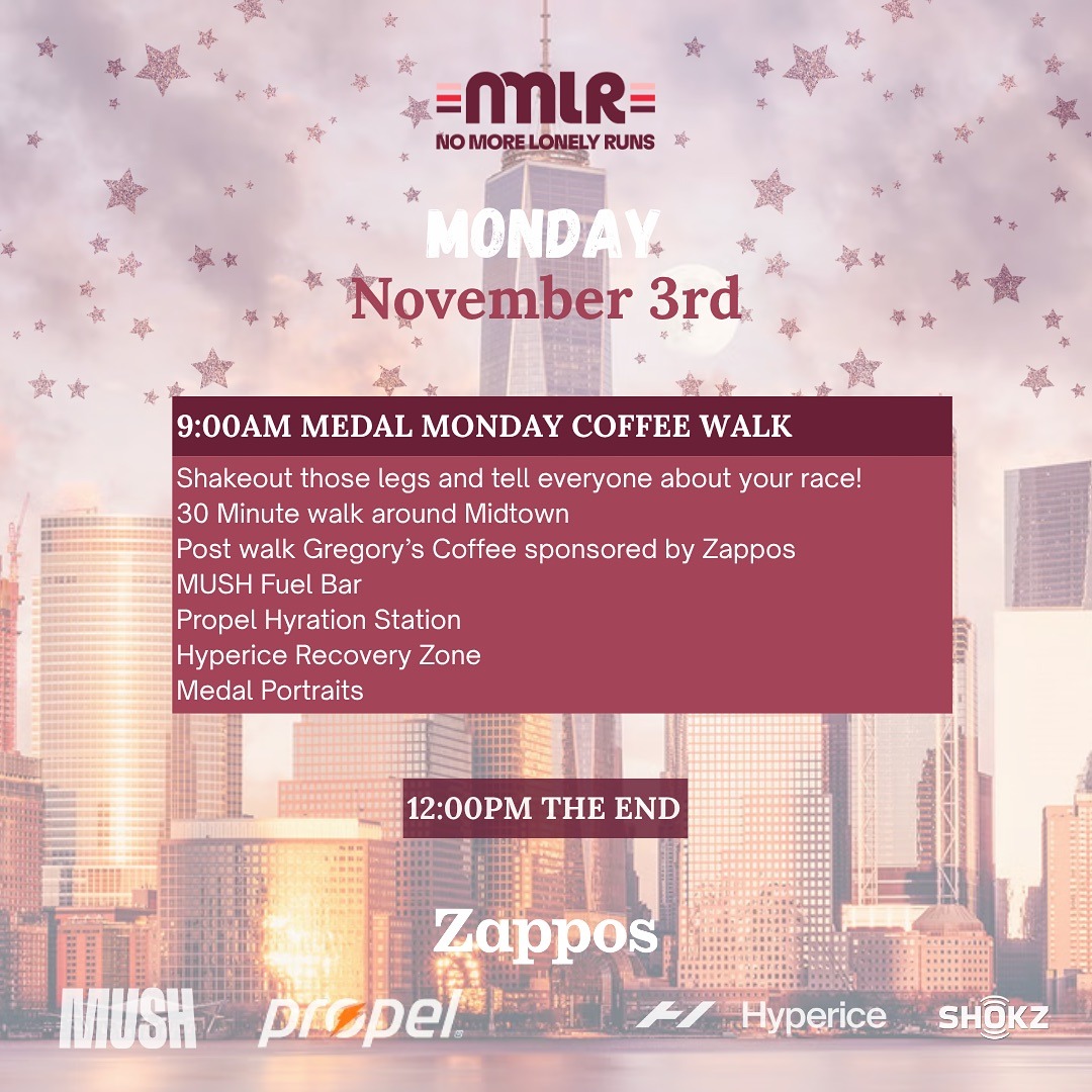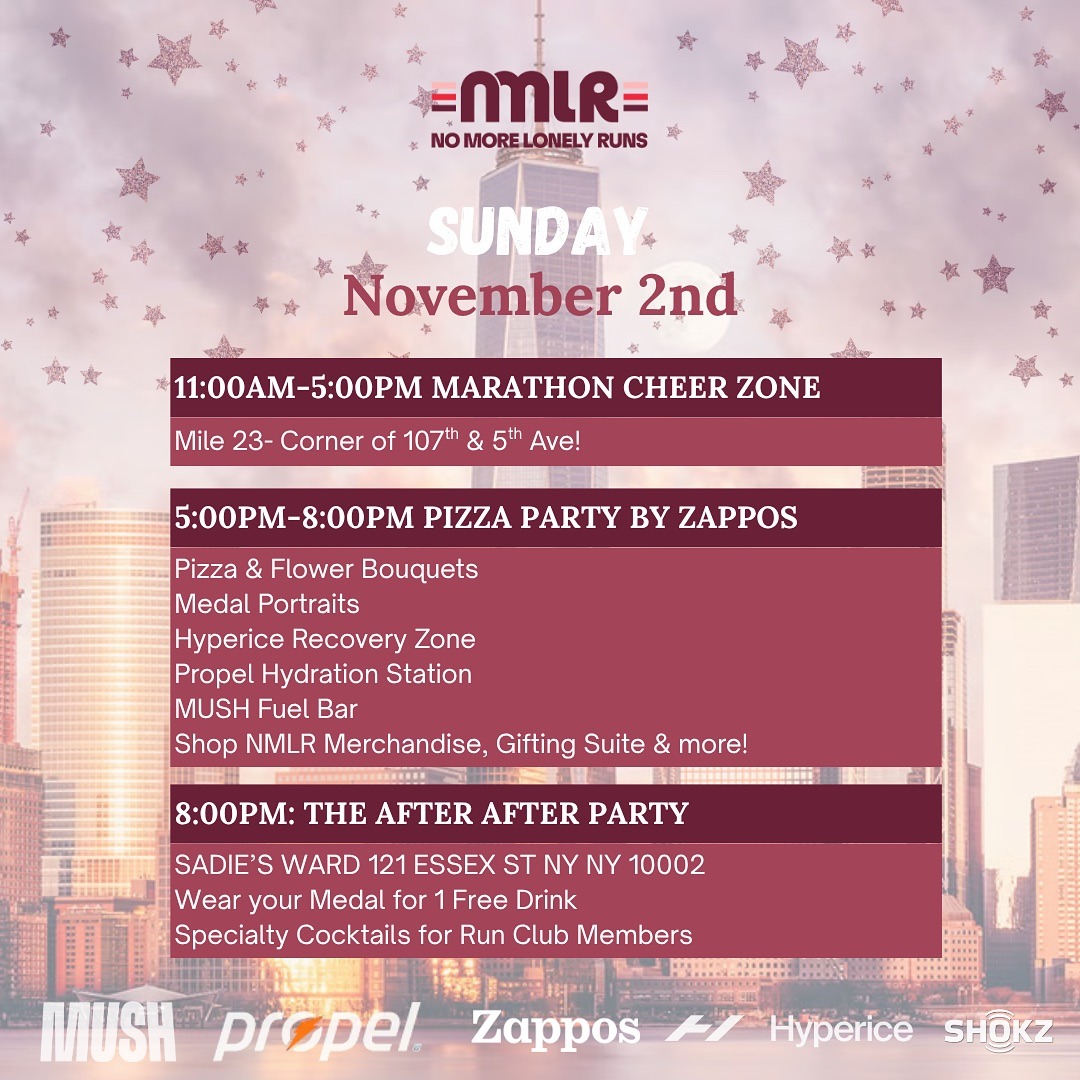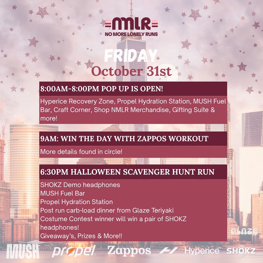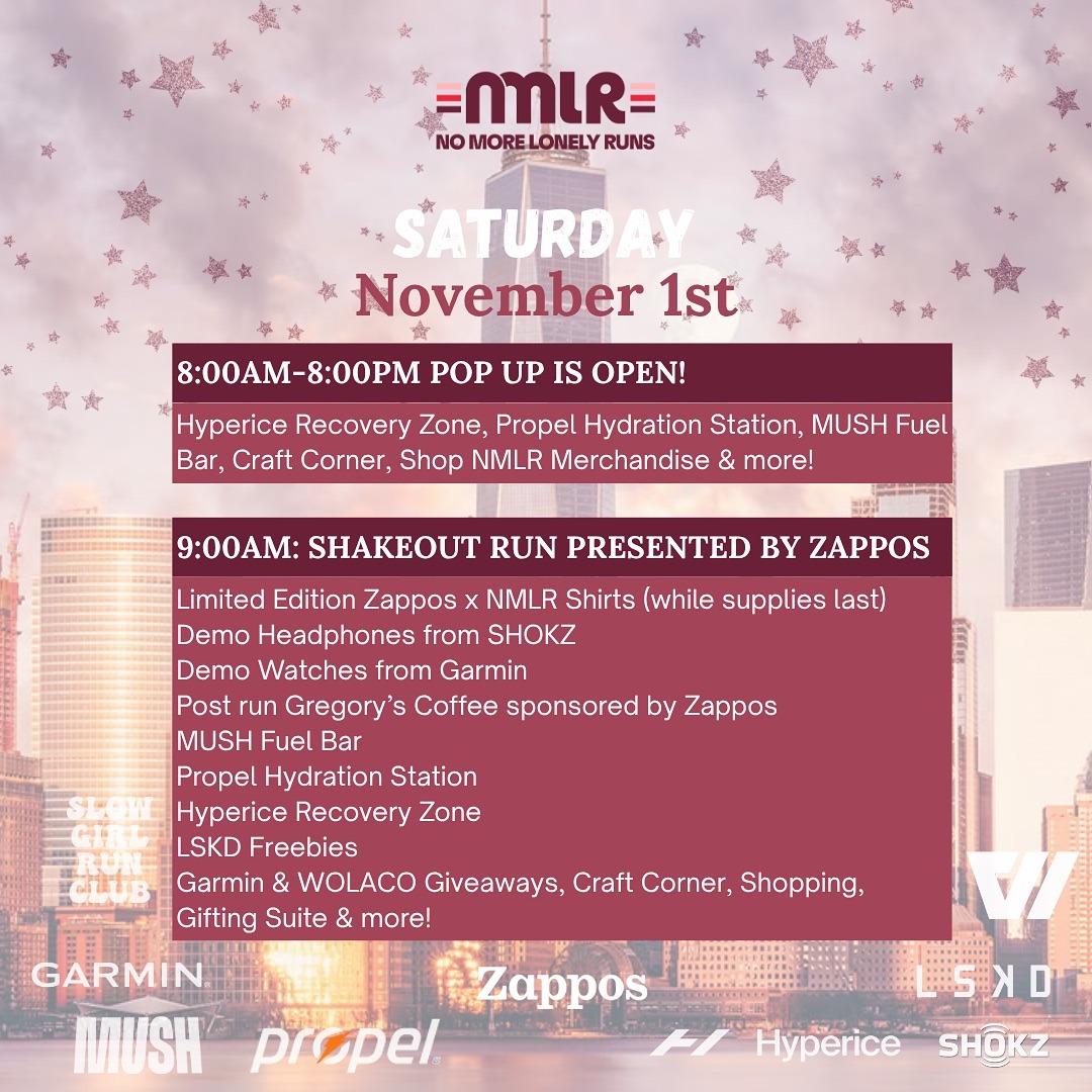 The countdown is on to the first-ever No More Lonely Runs NYC Marathon Pop Up presented by Zappos. Get ready for a weekend full of activities, giveaways, shopping, fuel & recovery!