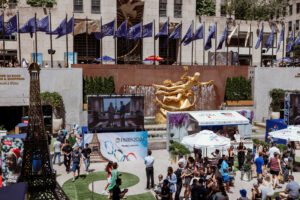 NBCUniversal is transforming the iconic Rockefeller Center into the U.S. home for its coverage of the Olympic Games Paris 2024. Throughout the Games, Rockefeller Center will serve as the hub for Team USA fans, featuring Parisian food, photo-ops, watch parties, and more!