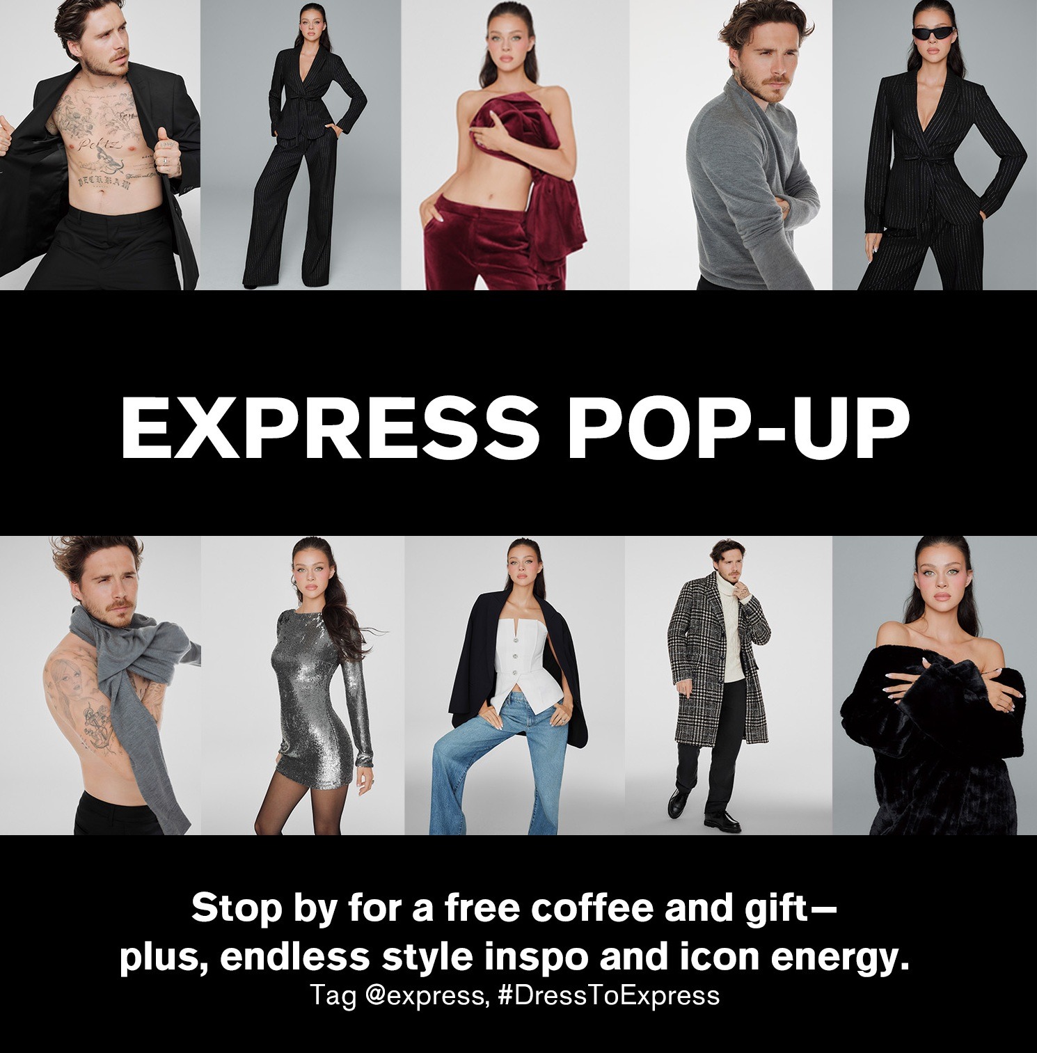 Express is taking over NYC’s Iconic Magazines for a one-day event, celebrating the Icons of Style campaign starring Brooklyn and Nicola Peltz Beckham. Enjoy free coffee, exclusive gifts, and endless style inspo. Stop by, strike a pose, and tag @express #DressToExpress. Open to the Public