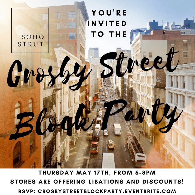 Join us on Crosby Street for libations, special discounts & offers! Retailers include: Aether, B & O, Sleepy Jones, Snow Peak, Max Bone, Paint Box, Opening Ceremony, Fellow Barber, & Saturday’s!