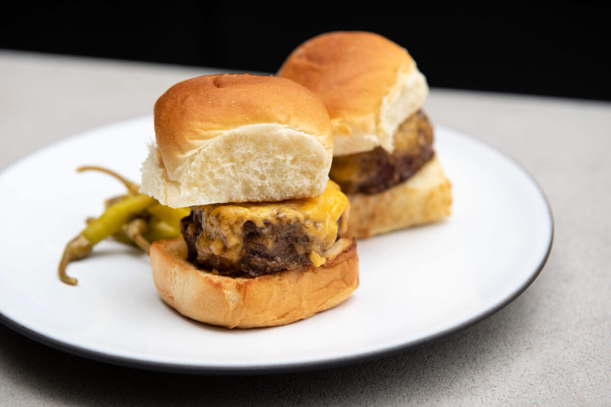 Dry-Aged Beef Sliders – Cheddar cheese, piparras