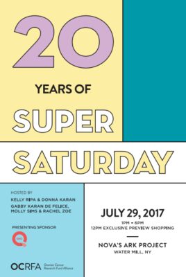 Super Saturday is hosted by Kelly Ripa, Donna Karan, Gabby Karan de Felice, Molly Sims, and Rachel Zoe, and presented by QVC. Over 2,000 people attend each Super Saturday–guests include supporters and their families, designers, celebrities, editors, media, and fashion lovers.