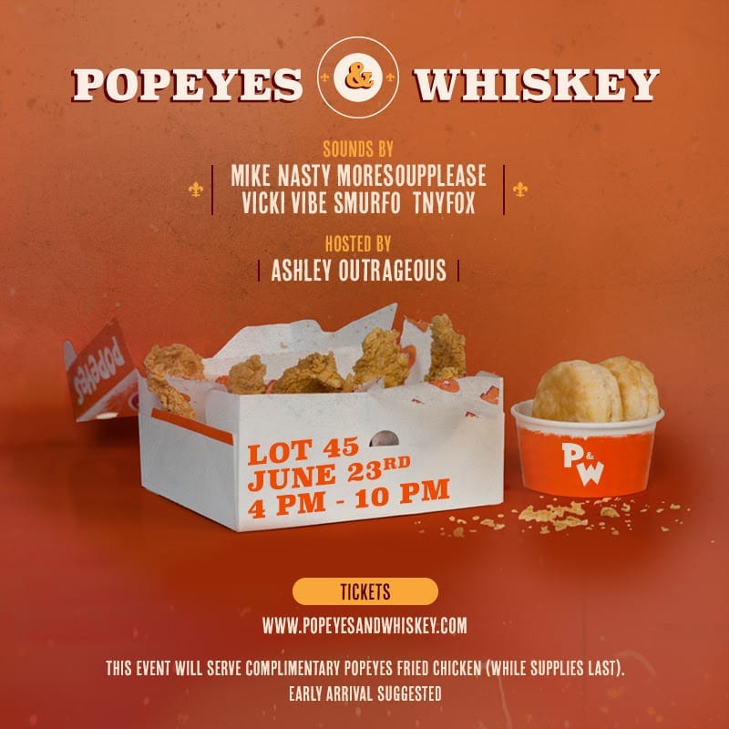 You’ll enjoy a curated summer whiskey menu, delicious chicken and biscuits from Popeyes, and a few might even win a trip to New Orleans this summer to visit the original Popeyes location.