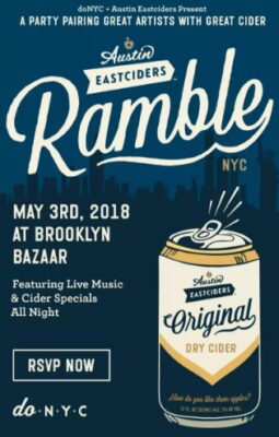 Kick off summer with a bang and join DoNYC and Austin Eastciders for the Austin Eastciders Ramble – an amazing night of music, dancing, food and ice cold cider all at the beautiful Brooklyn Bazaar!