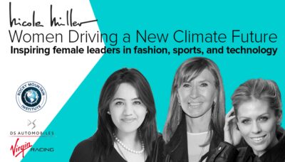 Special guests Nicole Miller, president and designer of Nicole Miller; Nicki Shields, TV presenter, host and pit-lane reporter for FIA Formula E; and Radhika Lalit, Global Cooling Prize lead with Rocky Mountain Institute, will discuss what motivates them to take climate action.They will also lead a brief, dynamic program on the insurgence of female leadership in traditionally male-dominated industries, and how industries not necessarily equated with climate action—such as fashion and sports—are helping to drive a more sustainable future.